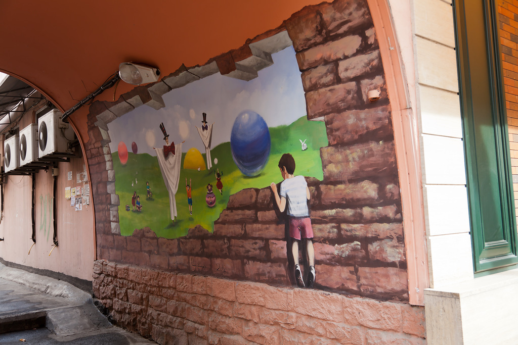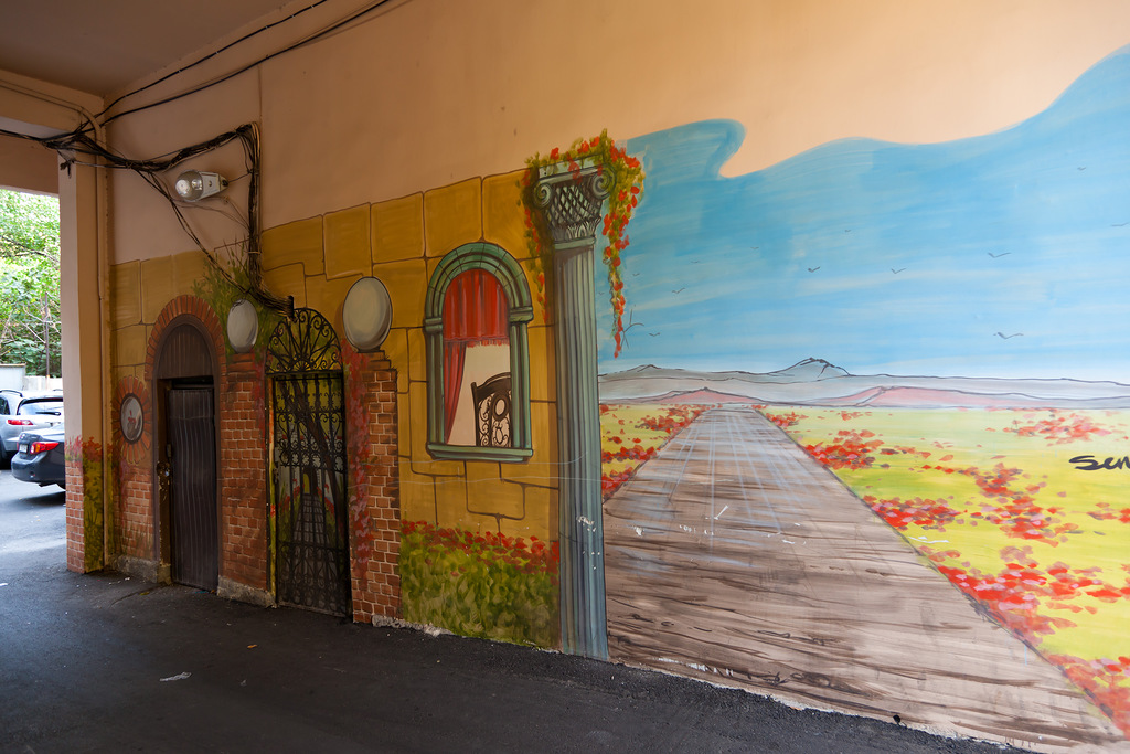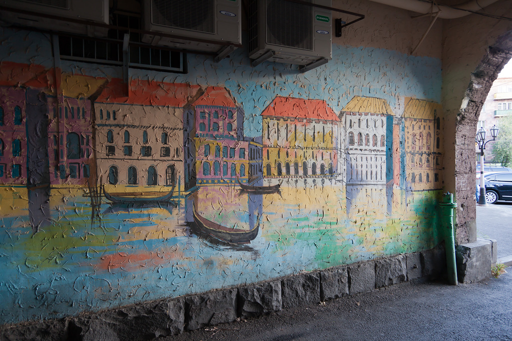 По инициативе мэрии и креативных ребят, многие из которых на тот момент были еще студентами, ереванские арки совершенно преобразились. Теперь по дороге с улицы во двор можно полюбоваться на живопись – то готический портрет Эдгара По, то пейзаж Венеции с гондолами, то огромный телефон, библиотека или пейзаж.