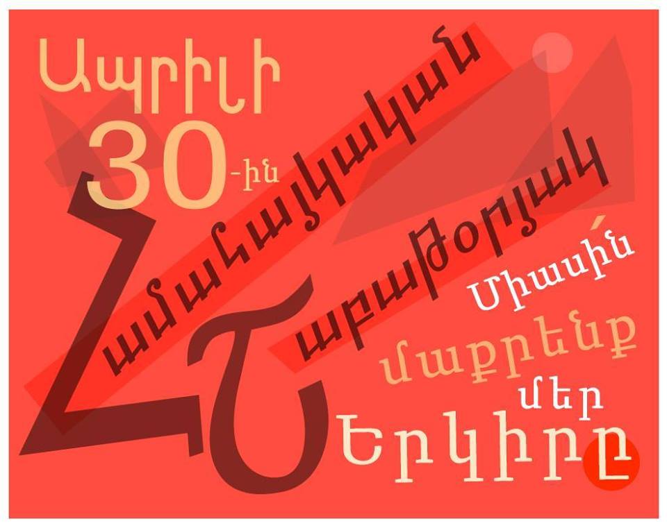 30 апреля 2016 года инициативная группа жителей столицы Армении выйдет на улицы города на необычную прогулку. Они будут убирать мусор. Каждый участник Всеармянского субботника самостоятельно определяет участок уборки и объем своей работы.