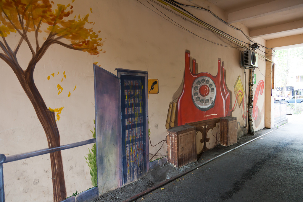 По инициативе мэрии и креативных ребят, многие из которых на тот момент были еще студентами, ереванские арки совершенно преобразились. Теперь по дороге с улицы во двор можно полюбоваться на живопись – то готический портрет Эдгара По, то пейзаж Венеции с гондолами, то огромный телефон, библиотека или пейзаж.
